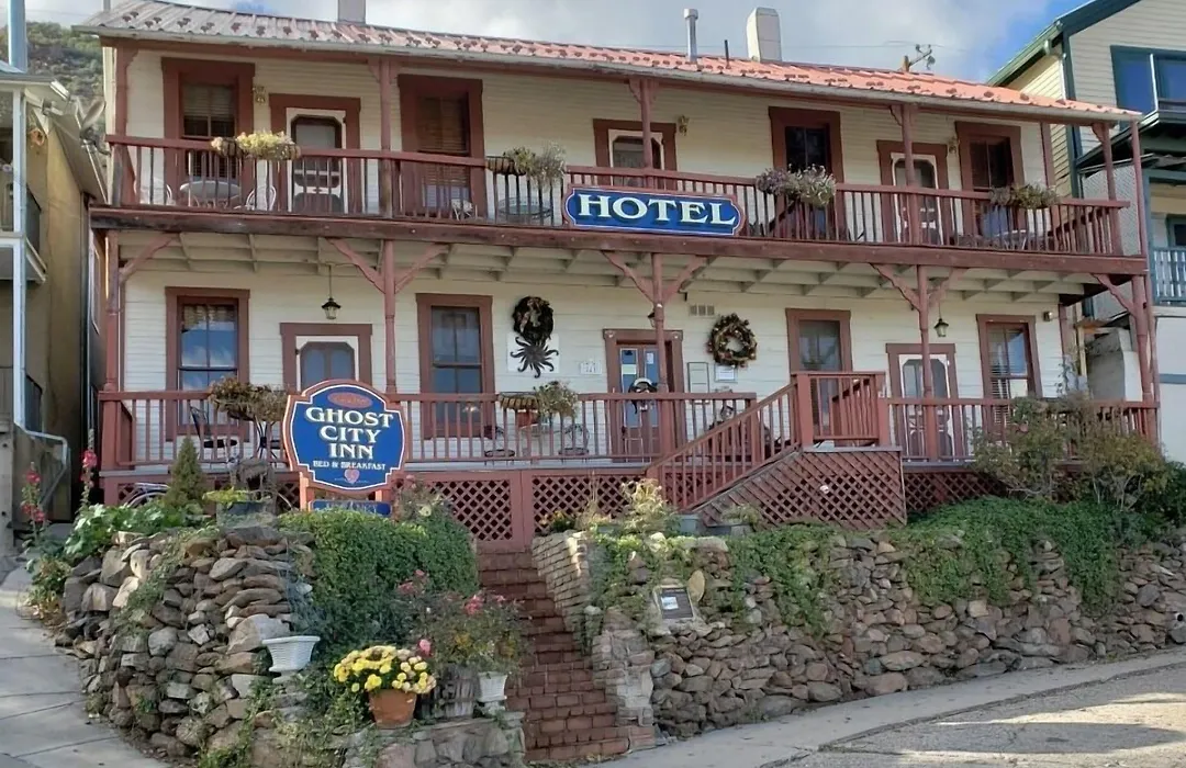 Alguns quartos no Ghost City Inn têm pátio e varanda.